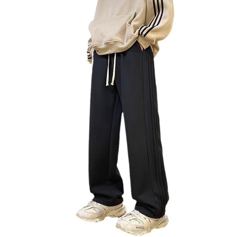 Men's casual sweatpants American retro gray wide-leg pants for teenagers with drapey sports trousers