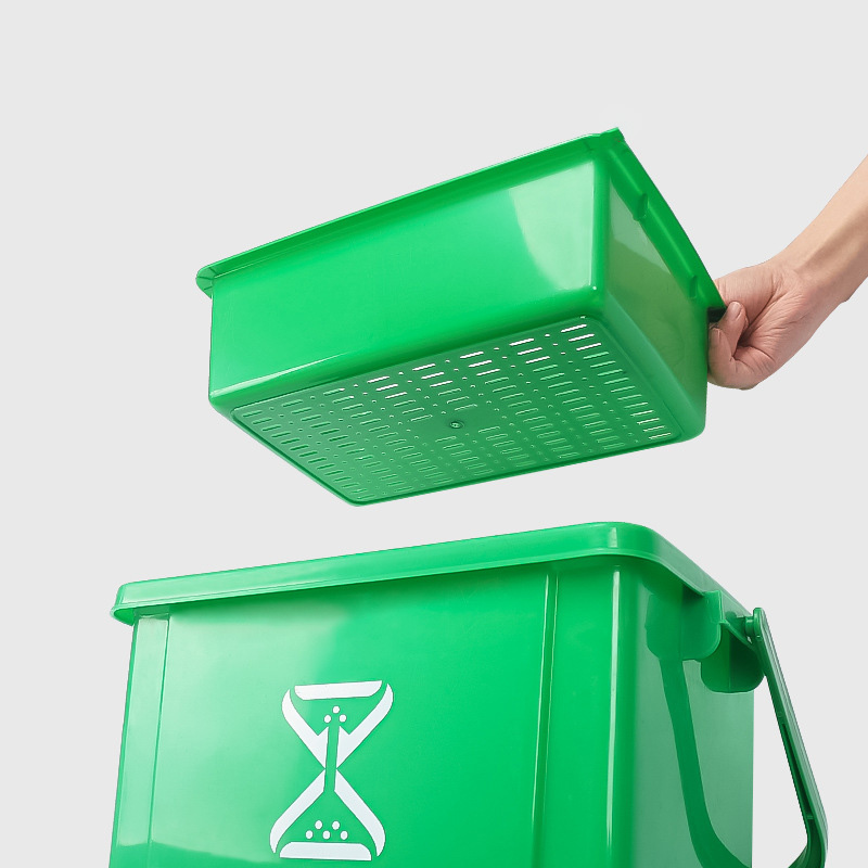 Food waste bin with lid, suitable for commercial kitchens and household waste sorting and storage.