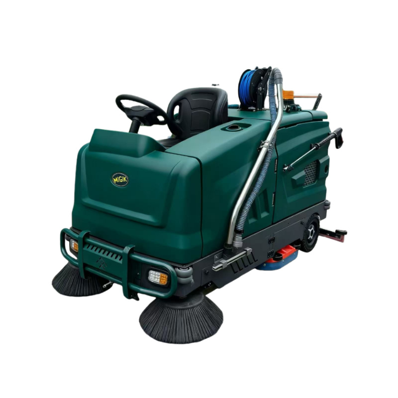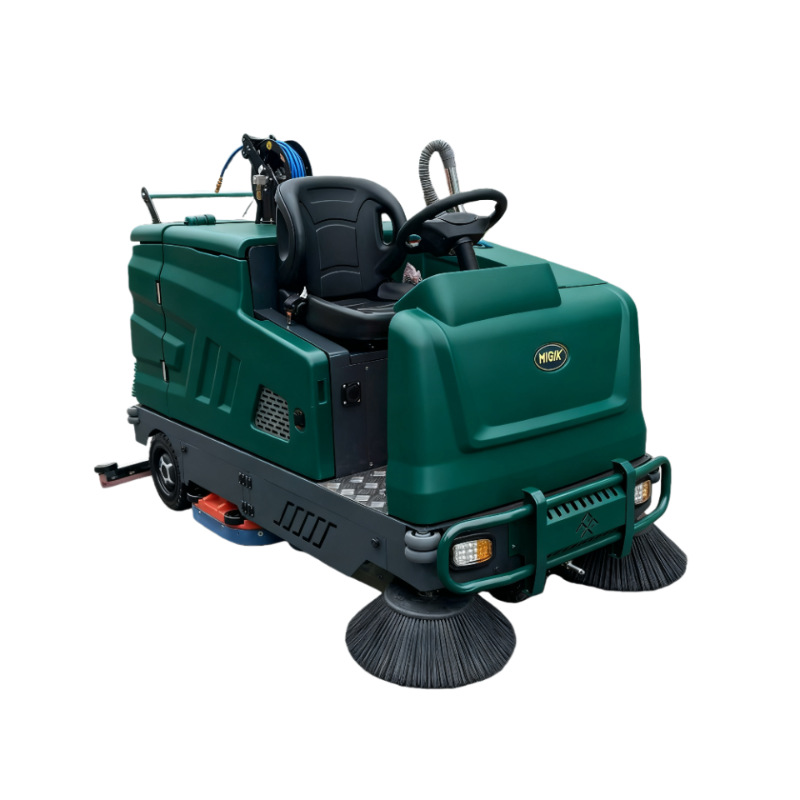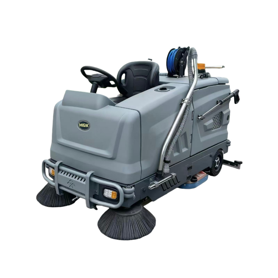 Ride-on floor cleaning machine (combining sweeping, scrubbing, and vacuuming functions)
